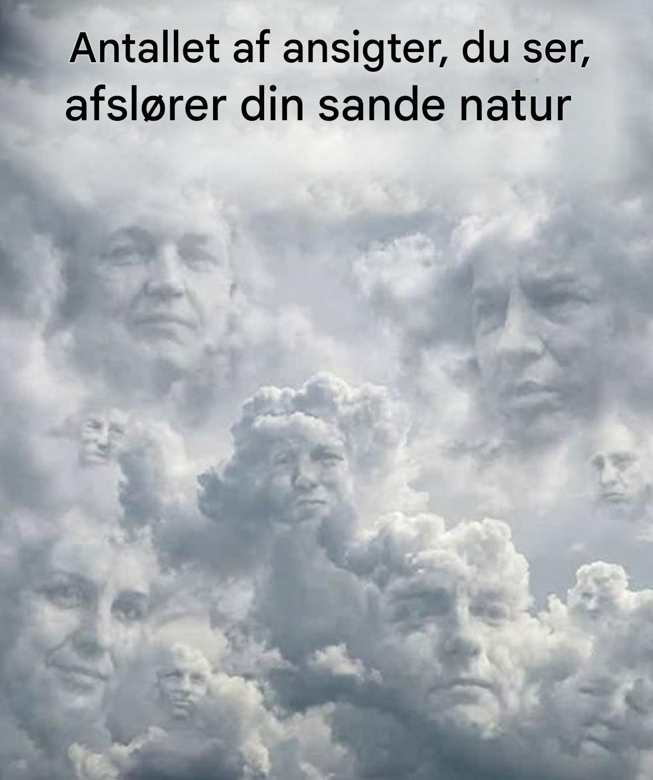 Især ansigter er stærke referencepunkter. Fra barnsben er vi betinget til at genkende dem hurtigt, fordi de er afgørende for kommunikation og social forbindelse. Som følge heraf ser nogle mennesker kun en diset himmel, mens andre straks får øje på menneskelige træk. Og denne forskel i opfattelse er langt fra ubetydelig ... samtidig med at den forbliver legende, selvfølgelig.