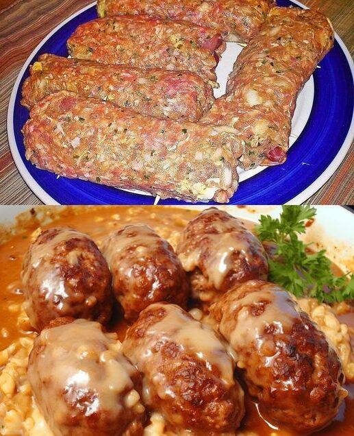 Ingredienser Kære venner, hvis I kunne lide opskriften, så skriv endelig en kommentar! 150 g piskefløde 2-3 æg 650 g hakket kød 2 spsk sennep 6-8 skiver røget Schwarzwald-skinke 2 spsk olie 2 spsk mel 2 gamle rundstykker 5 løg 1 tsk bouillon Persille, muskatnød, salt og peber Paprika 6 syltede agurker Instruktioner: Næste→