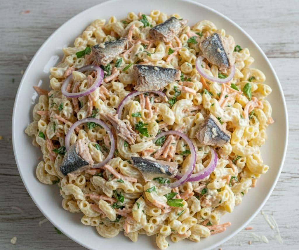 1. Kog 250 g makaroni, hæld vandet fra og lad det køle af.