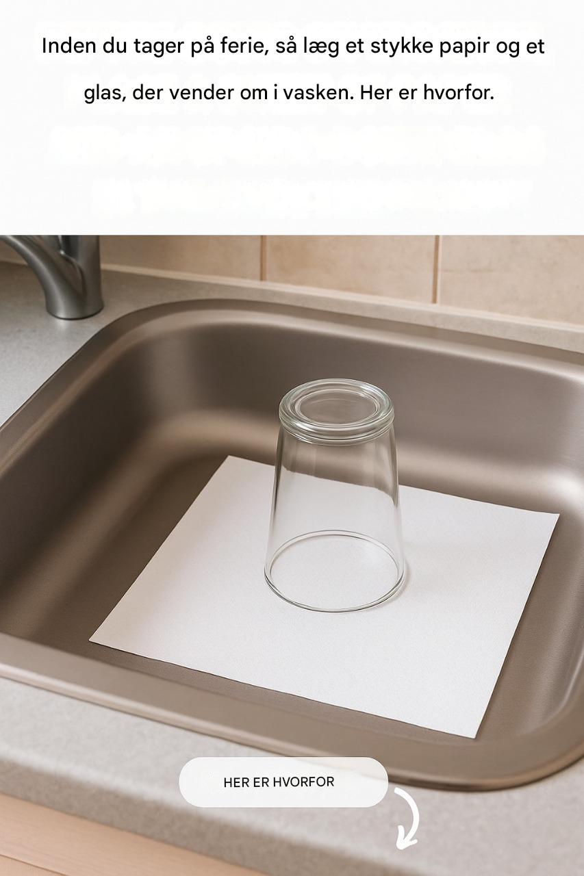 Dette simple trick går ud på at placere et ark absorberende papir (f.eks. køkkenrulle eller karklude) over vaskens åbning og derefter placere et glas, der vender omvendt, ovenpå.