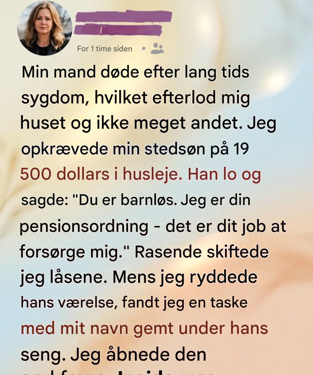 Mens jeg rodede rundt på hans værelse, bemærkede jeg en sportstaske gemt under sengen, pænt mærket med mit navn. Nysgerrig og forvirret åbnede jeg den. Indeni var en opsparingsbog fyldt med optegnelser over små, men stabile indbetalinger foretaget over flere år. Nedenunder lå et foldet fødselsdagskort skrevet med Leos omhyggelige håndskrift. I beskeden forklarede han, at han havde sparet stille og roligt op for at hjælpe med at tage sig af mig, efter hans far var gået bort. Hans spøgefulde svar aftenen før, skrev han, havde været hans akavede måde at skjule sin plan på, indtil han følte, at øjeblikket var inde. Mens jeg læste, slørede tårerne ordene. Jeg indså, hvor meget sorg og frygt havde forvrænget mit perspektiv – og hvor dybt han havde tænkt over min fremtid.
