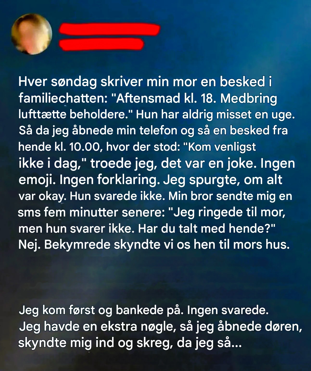 Så da den frygtede sms ankom – "Kom venligst ikke i dag" – fornemmede jeg straks, at noget var galt. Ingen forklaring, ingen beroligende ord. Bare denne usædvanlige, næsten kolde anmodning. Min bror og jeg behøvede ikke engang at diskutere det: vi satte os bare ind i bilen.