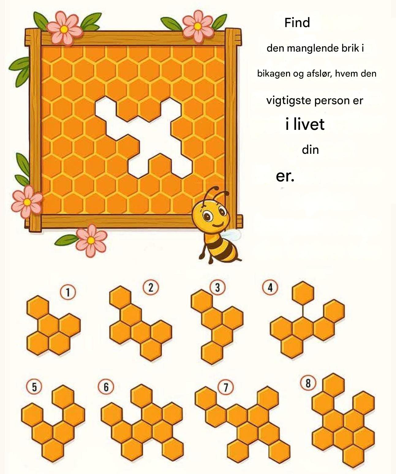 Har du nogensinde oplevet de visuelle tests, der virker harmløse, indtil de afslører noget uventet? Denne fungerer på samme måde. Et bikagepuslespil mangler en brik, og du har otte valgmuligheder. Din opgave virker simpel: vælg instinktivt den brik, der udfylder hullet. Men det valg kan afsløre meget mere, end du tror... Hvad afslører det om den person, der deler dit liv i bredere forstand - en ven, en elsket eller en stille, hverdagsstøtte? Følg med...