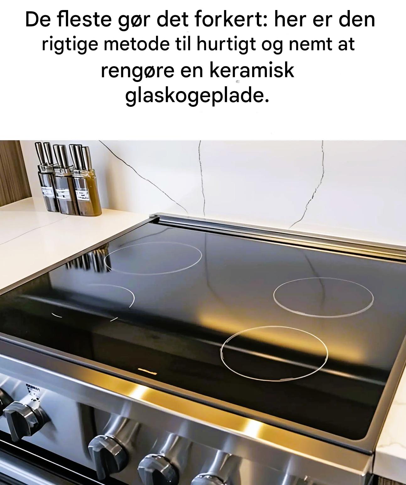 Foretrækker bløde klude, ikke-slibende puder og rengøringsmidler specielt formuleret til keramiske plader.