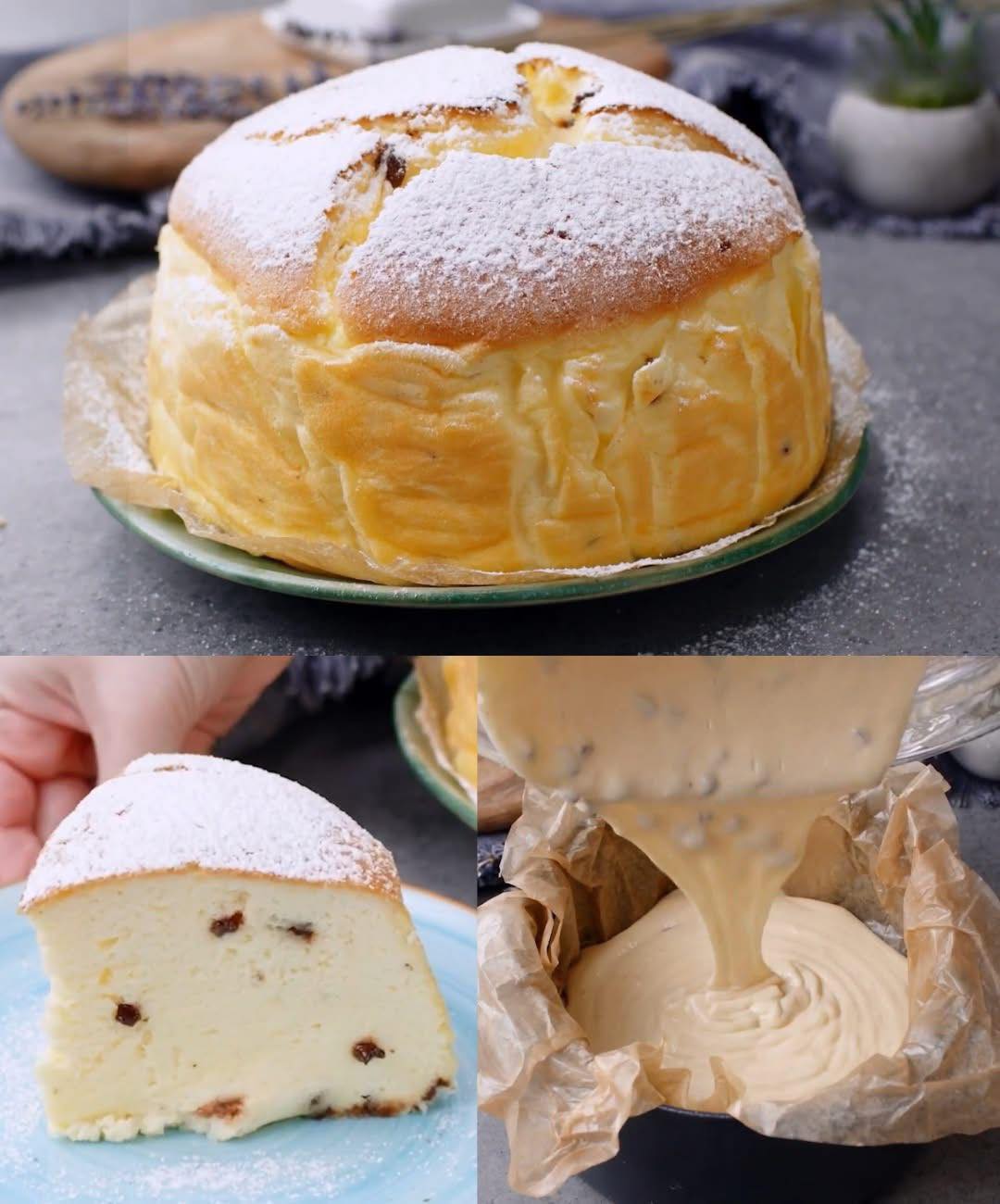 Ingredienser til dejen: – 80 ml mælk – 210 g ricottaost – 40 g usaltet smør – 50 g mandelmel – 86 g agavesirup – 5 æg – 17 g majsstivelse – 1 spiseskefuld citronsaft – Skal af en citron (valgfrit) Tilberedning: